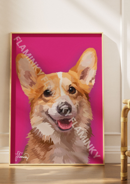 Part of our Dog / Pet Series, this piece combines clean digital artistry with warm character a must-have for Corgi fans or anyone who appreciates vibrant, modern pet portraits.