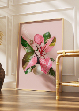Celebrate the beauty of houseplants with this digital portrait of a Pink Princess Philodendron, featuring its signature variegated leaves in soft greens and pinks. The pastel pink background enhances the plant’s delicate tones, creating a soothing and contemporary art piece perfect for plant lovers and modern interiors.